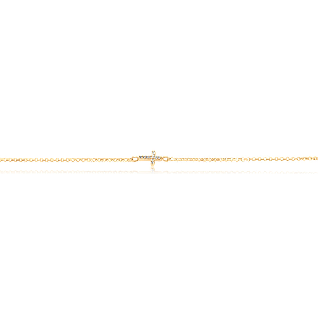 Mini Diamond Cross on Chain Bracelet