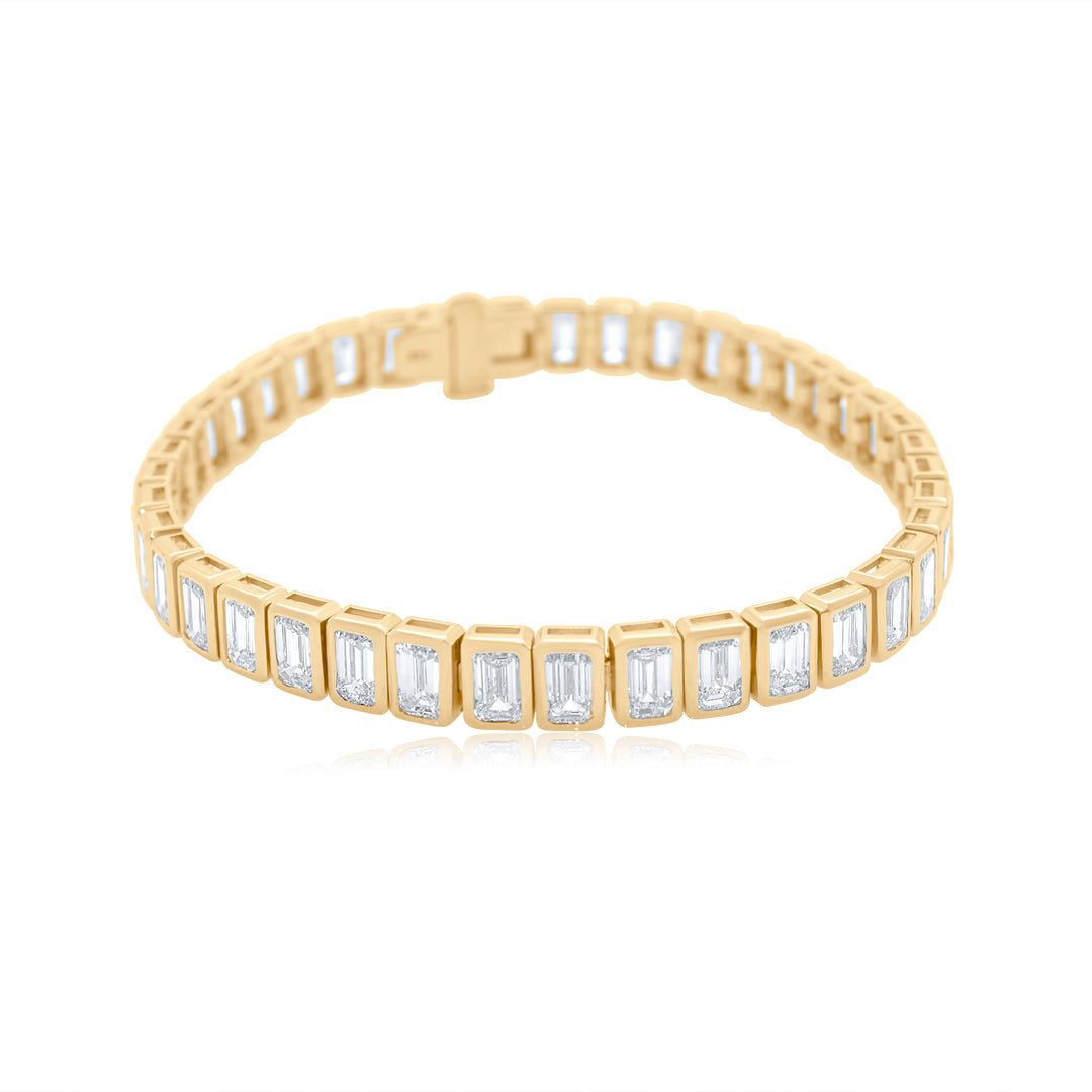 Bezel Set Emerald Cut Diamond Tennis Bracelet
