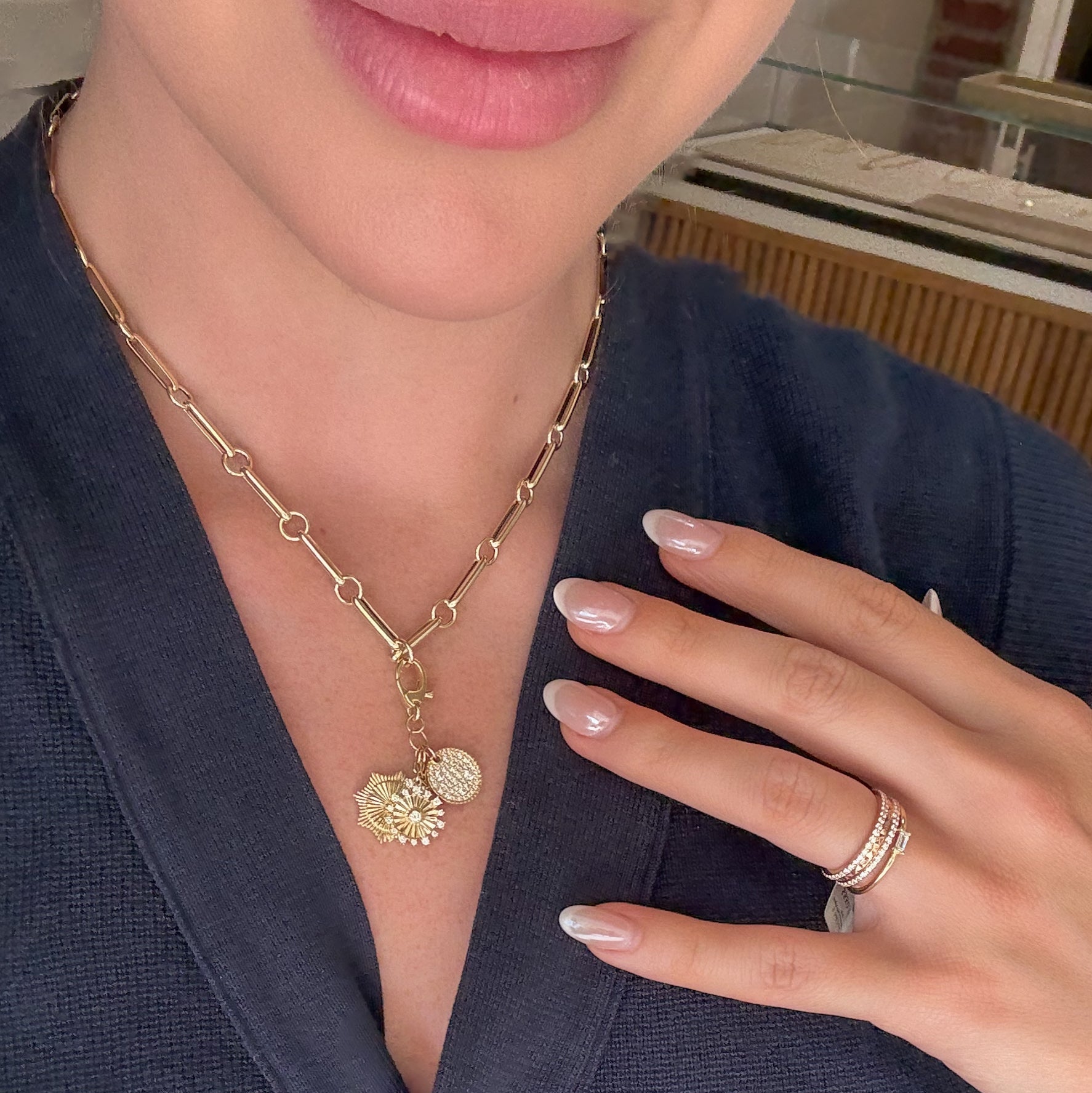 14K Yellow GoldDiamondMeasures approximately 1 ¾" in lengthLobster clasp for easy chain attachment