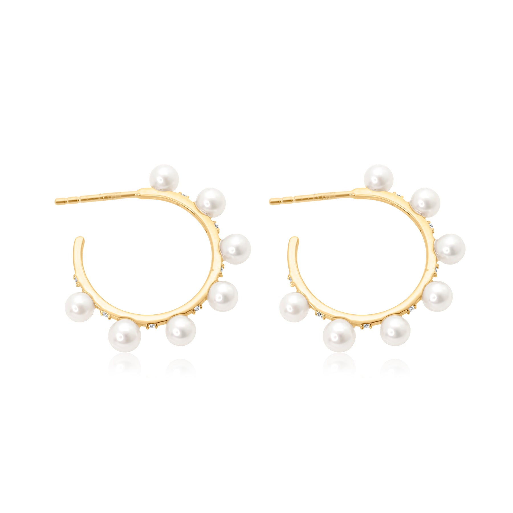 14K Yellow GoldDiamond, PearlHoop measures approximately ¾" in length