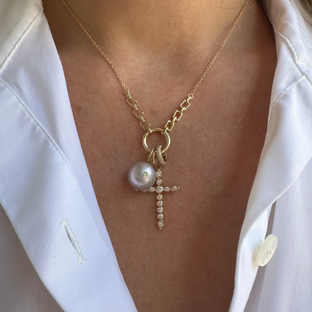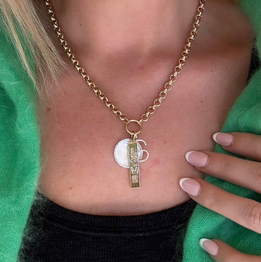 Diamond Mother of Pearl Dome Heart Disc Charm